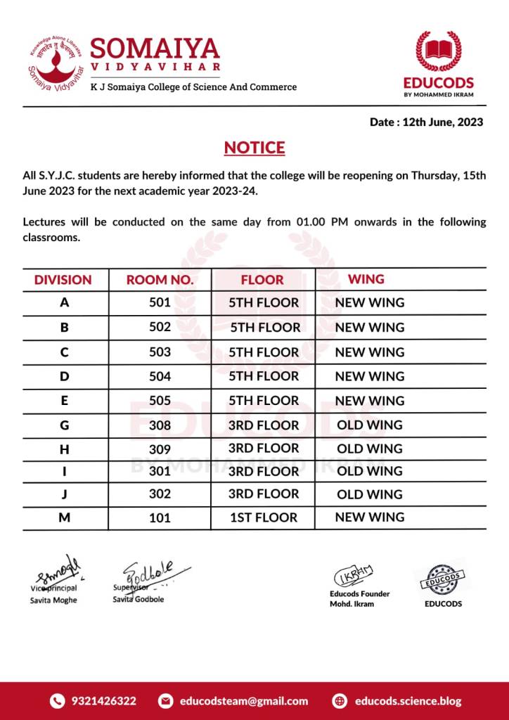 SYJC COLLEGE REOPENS ON 15TH JUNE, 2023 (Academic Year: 2022-2023)